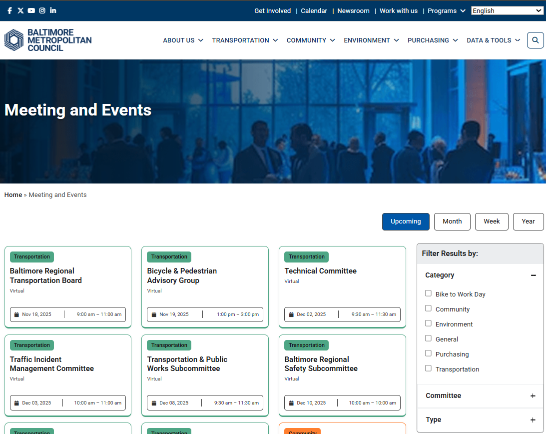 The Baltimore Metropolitan Council (BMC) serves as the regional council of governments for the Baltimore area, representing the City of Baltimore and six surrounding counties. Through initiatives led by the Baltimore Regional Transportation Board (BRTB), BMC coordinates collaborative planning in transportation, housing, environment, and economic development, helping shape policies that impact millions of residents.